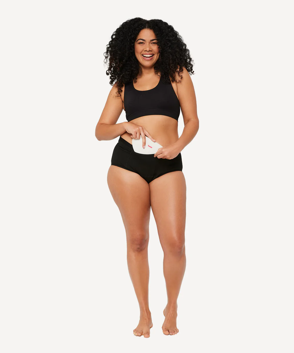Everything you need for a better period: a rae Heat Pad, Pocket Undies, Magnesium Spray, and Bubble Bath. Comfort, care, and $25 savings.